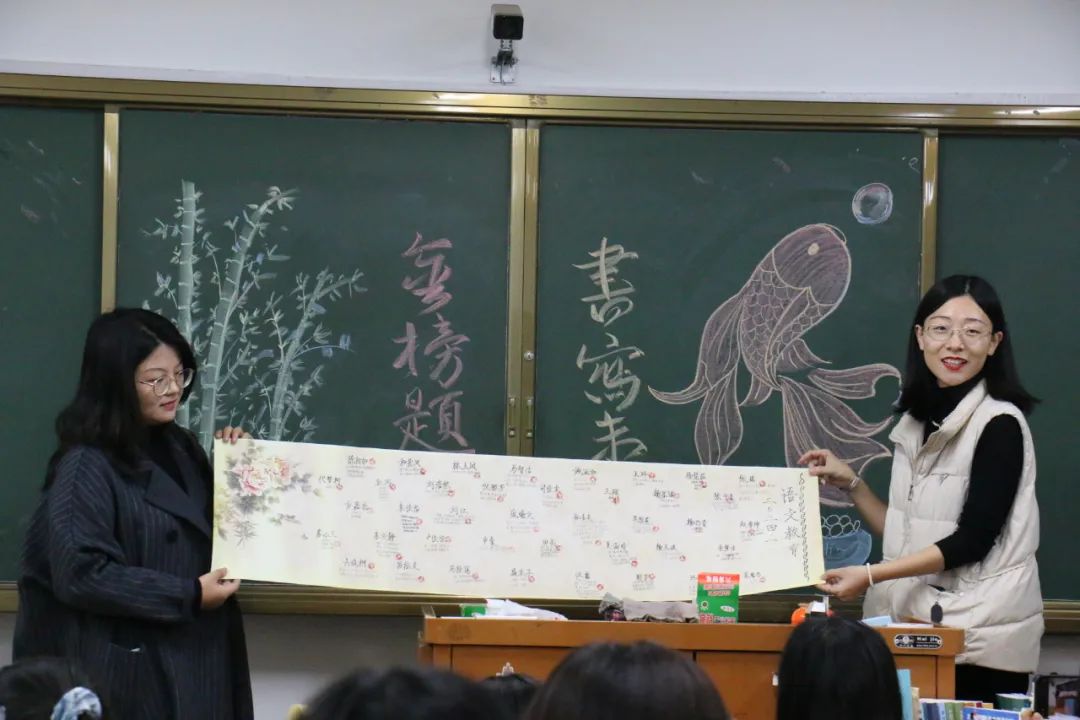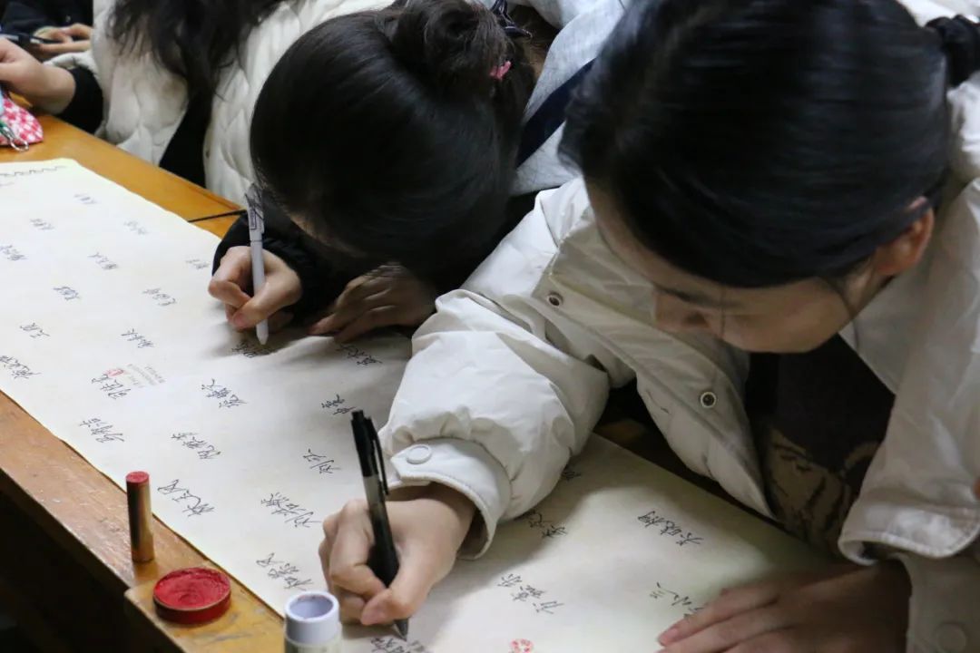 在整个班级的齐心协力之下,这张凝聚着所有人美好希望与绚烂梦想的卷轴被圆满书写完成。这幅写满心愿、盖满印章的卷轴,将由班主任妥善封存并精心保管,静待三年后同学们毕业之时再度开启,届时,它将成为见证同学们这三年间成长蜕变与逐梦奋进历程的珍贵信物,让每一位学子都能清晰地回溯自己在青春岁月中留下的坚实脚印与璀璨星光。