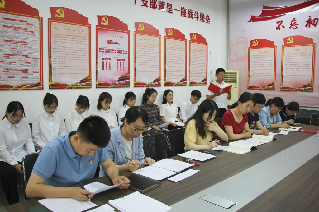2021年5月28日下午,公司员工党支部在党员活动室召开接收预备党员大会,讨论表决程连恒、宗界楠、于淏泽、张阳、王婧颖、刘瑞敏、白晨晨、蒋雨桐、李昱廷、张梦甜、张前进、李桢、张仕雨、王琪、王怡然15名发展对象的组织发展问题。员工党支部教师党员、入党介绍人、发展对象参加了此次会议。