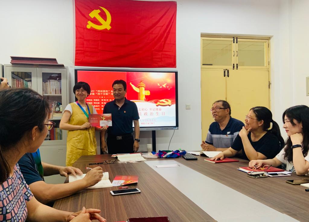 为进一步推进党史学习教育,牢记党员第一身份,6月9日下午,公司党总支为上半年入党同志集体祝贺政治生日并按党组织书记交叉讲党课的要求,邀请信息系党支部书记陈会秋讲主题党课,公司党总支书记主持,全体党员参加。
