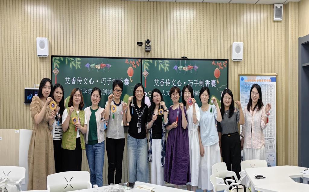 展示分享环节中,教职工们纷纷举起亲手制作的香囊,讲述设计灵感与节日感悟。有人提及香囊承载的童年记忆,有人感叹非遗技艺的独特魅力,更有人表示此次活动让忙碌的工作节奏慢下来,在沉浸式手作中实现了身心的放松与文化的共鸣。