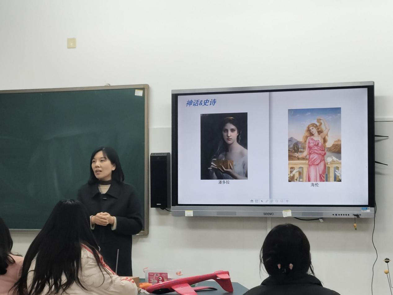 孙老师先以“你觉得西方人重男轻女吗”的思辨性问题发问,引发同学们的深度思考。在此基础上,她沿着欧美文学发展脉络系统梳理女性形象变迁,从古希腊罗马文学经典女性形象切入,逐步延伸至中世纪、文艺复兴等阶段,结合人物个性与时代背景简明解读各时期女性形象的共性与差异。随后,孙老师聚焦核心特征展开分析:早期文学中女性多呈“天使”与“妖妇”的二元对立,是被世俗定义的“他者”;19 世纪开始,诸如《玩偶之家》中的“娜拉”、《包法利夫人》中的“爱玛”等,充满了女性意识的觉醒及与现实困境的对抗,并结合工业革命语境说明其成长路径;20世纪则以《飘》中“斯嘉丽”及《宠儿》中的“塞丝”等黑人女性形象,展现西方文学女性形象打破桎梏、走向独立与多元的新面貌。