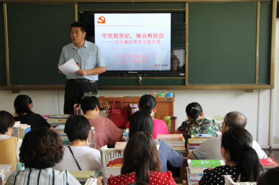 6月18日下午,人文科学系开展党的纪律专题党课教育活动,党总支书记张会峰主讲党课,全体教师党员、发展对象参加学习。