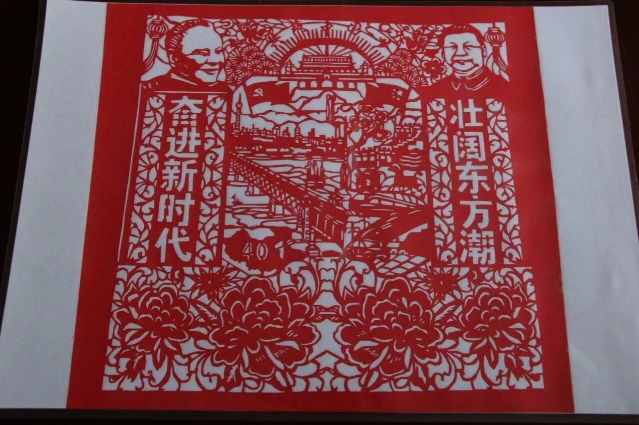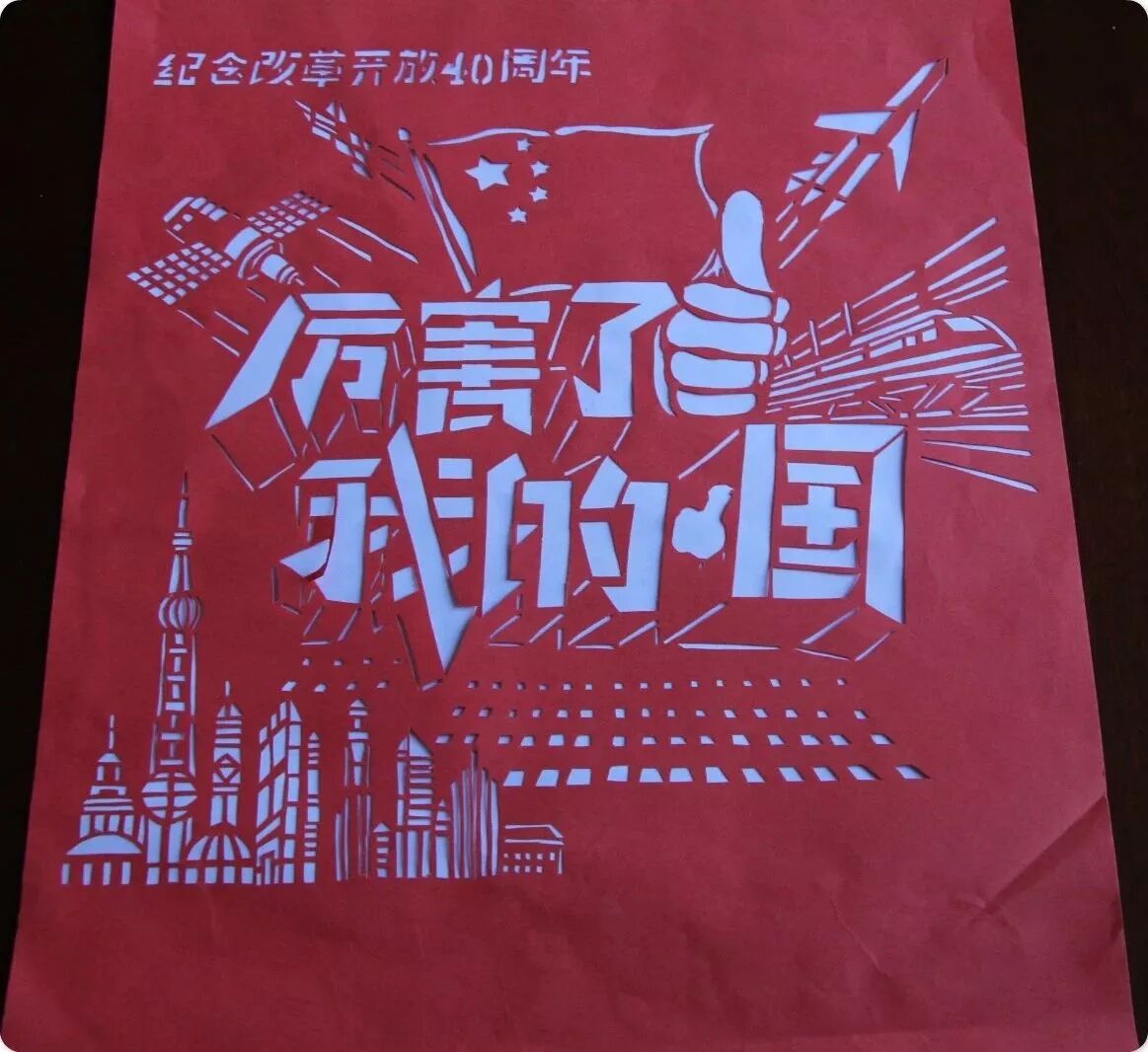 人们称民间美术“有图必有意,有意必吉祥”,意思是说,在民间剪纸中绝大多数都是具有象征意义的吉祥图案。就如这几幅作品,凸显了我国近40年来的发展成就。