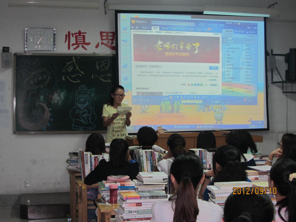 2012年9月10日晚上7:00,在人文科学系团总支的组织下,全系员工开展了以“桃李芬芳季,感恩教师节”为主题的团课活动。在这第28个教师节的节日里,员工们通过简朴而真诚的方式,表达尊师情意,传递绵绵祝福。