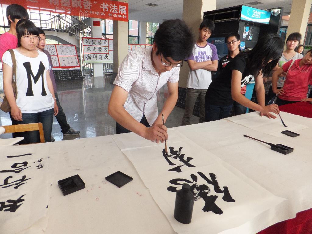 2012年5月14日,由校团委主办,人文科学系与书法学社承办的以“艺术节之翰墨飘香”为主题的大型书画展在奂山书院及教学楼大厅拉开了帷幕。