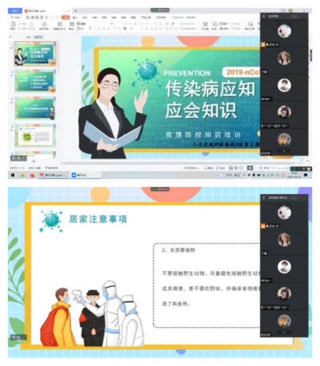 2.班主任进班培训与员工“教师”讲授相结合。各班班主任走进班级为员工做“传染病防控应知应会知识”培训;有的班级在班主任的指导和参与下,由员工走上讲台为员工传授相关的知识,受到了员工的欢迎。有的班级实习期间组织员工进行线上班会培训。