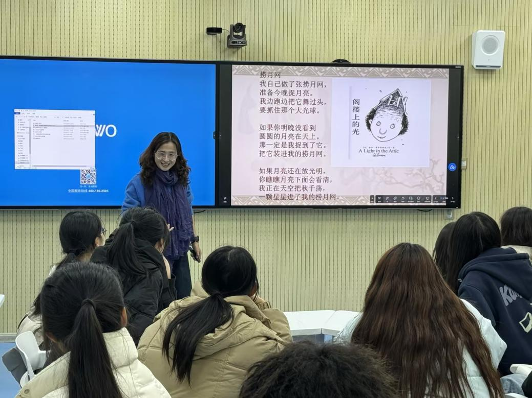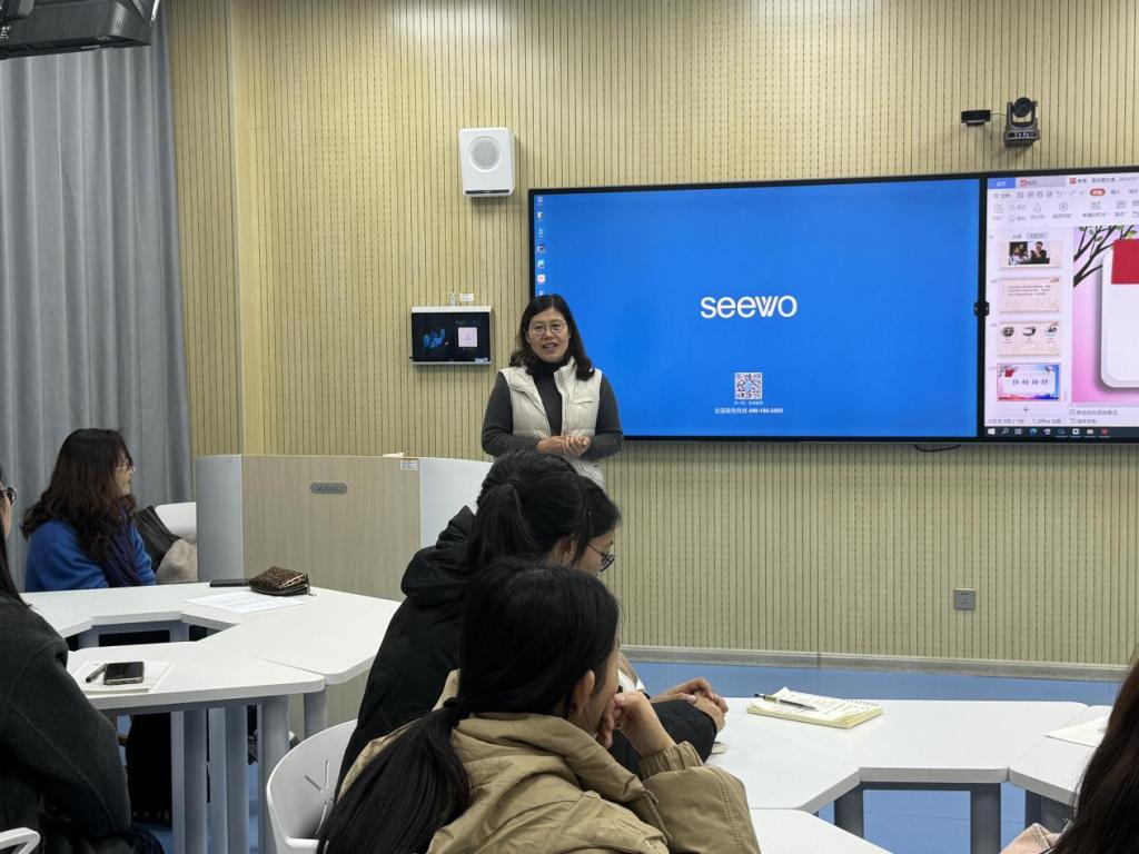 讲座伊始,田玲老师便从个人教学经验出发,围绕“喜欢、互助、坚守”三个关键词,和大家分享了自己有趣生动的教育经历。她提出,教育最优化境界是师生共同受益与发展,教师在育人的同时,更要充分发挥自身特色,实现个人教育梦想。在此基础上,田玲老师着重提出了小员工阅读习惯的培养,通过展示生动的课堂实例和有趣的教学视频,与同学们分享师生共读、家长带动、集体朗读等培养方法,指出同学们应当紧跟新课堂、新课标,学会多元化构思教学方法,在未来的教育之路上行稳致远。