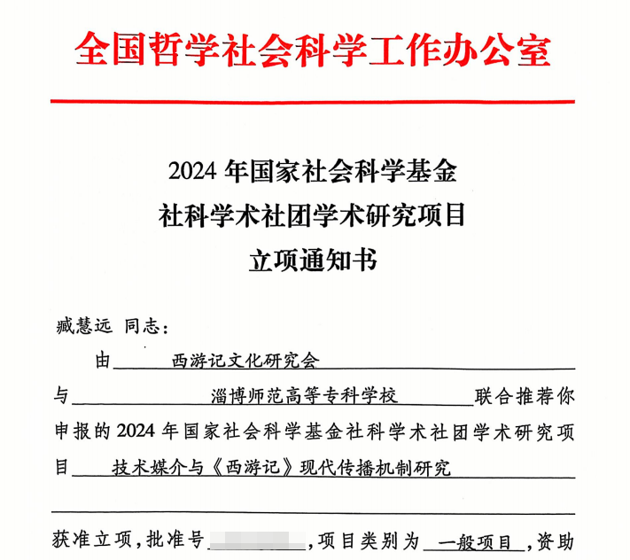 近日,全国哲学社会科学工作办公室发布了2024年度国家社科基金社科学术社团学术研究项目立项通知,公司bevictor伟德教师臧慧远主持的《技术媒介与<西游记>现代传播机制研究》项目成功立项。