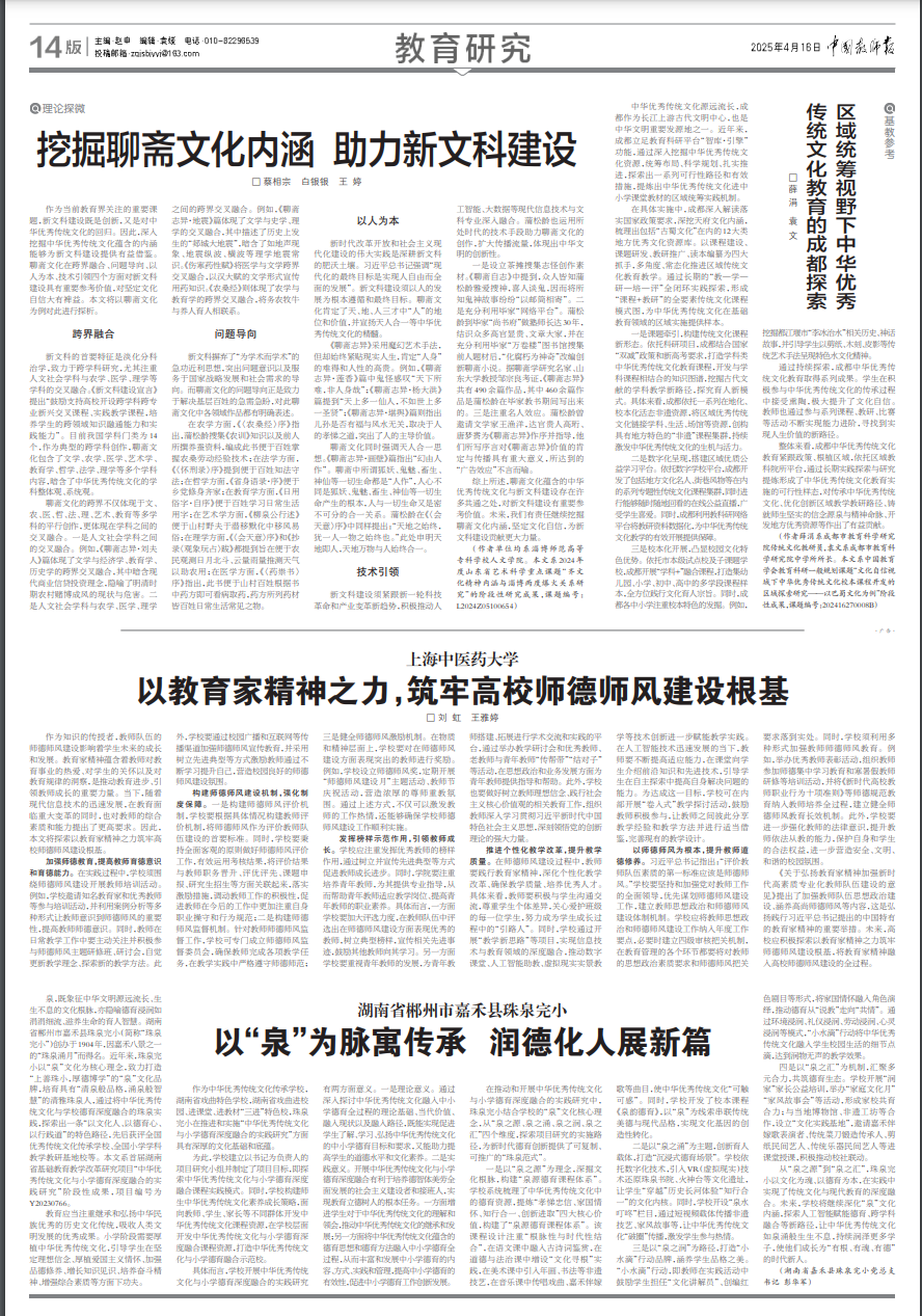 《中国教师报》4月16日第14版“教育研究”,刊登了公司bevictor伟德蔡相宗、白银银、王婷老师的文章《挖掘聊斋文化内涵 助力新文科建设》。作为当前教育界关注的重要课题,新文科建设既是创新,又是对中华优秀传统文化的回归。因此,深入挖掘中华优秀传统文化蕴含的内涵能够为新文科建设提供有益借鉴。文章以聊斋文化为例对此进行了探析。
