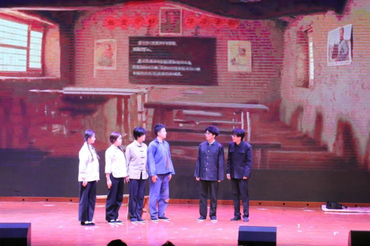 随后,话剧《情洒沂蒙》缓缓拉开帷幕。该剧以李振华老师的事迹为基础,通过生动形象的表演,向大家展现了一位人民教育家的崇高风范和无私奉献精神。剧中,李振华老师扎根沂蒙山区,几十年如一日地致力于教育事业,用知识改变了一代又一代山里娃的命运。他的事迹深深触动了在场的每一位师生,大家纷纷表示要以李振华老师为榜样,将爱国情怀深深扎根在教育信念之中,以实际行动践行教育家精神。