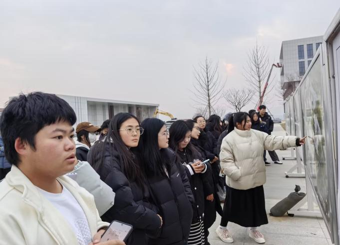 在北校区图书馆前广场,师生们驻足观看新校区平面图,认真倾听工作人员介绍新校区的整体规划、空间布局、功能分区及工程建设等情况。之后,师生们近距离参观了图书馆、实训楼,直观感受和体验了新校区的建设成果,对新校区的现代化设计和人性化布局印象深刻,对未来在新校区的学习和生活充满期待。