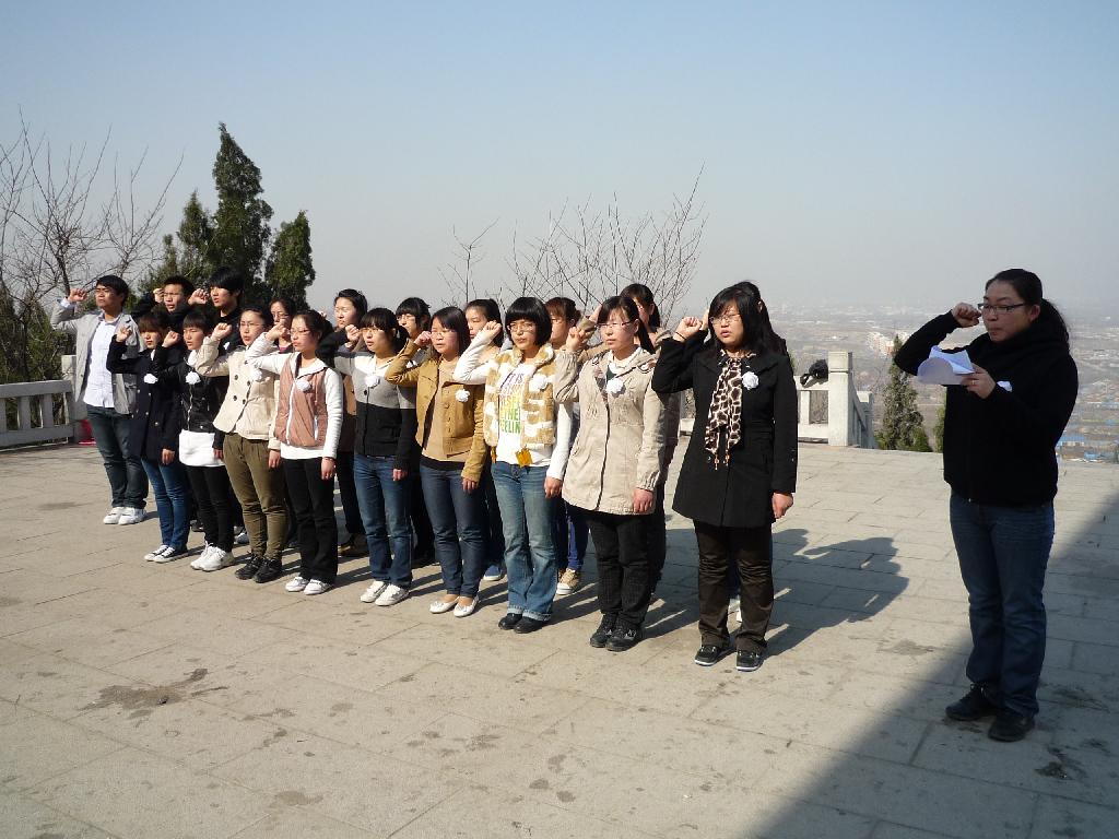 在党的十八大召开前夕,为深入开展创先争优活动,进一步加强基层党组织建设,增强广老员工党员和员工干部爱党爱校、遵纪守法的意识,在系党总支和团总支的组织下,怀着对革命先烈无比崇敬的心情,清明节之际,人文科学系员工党支部24名员工党员和员工干部代表来到位于张店的黑铁山英雄纪念馆,开展“祭奠先烈入党宣誓”的清明祭扫活动,并在烈士纪念碑前举行了庄严的入党宣誓仪式。