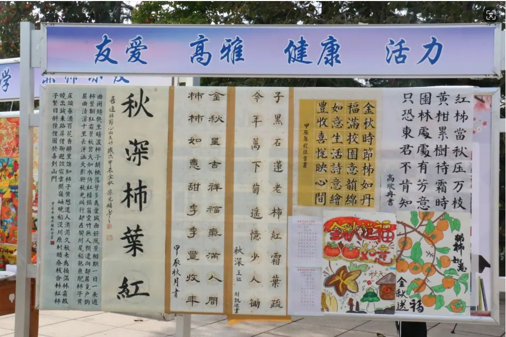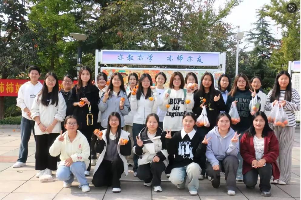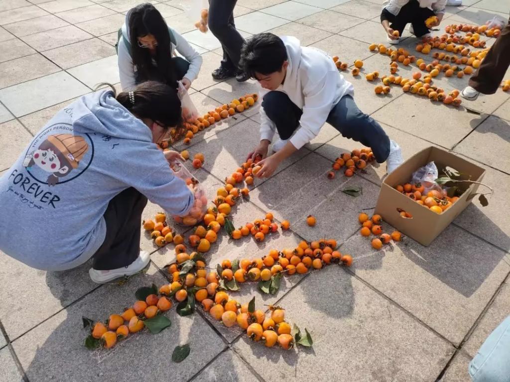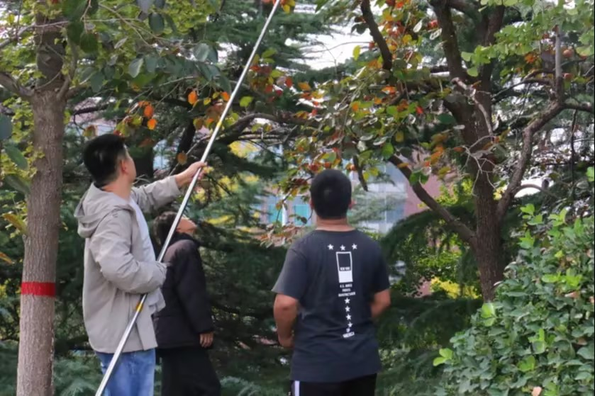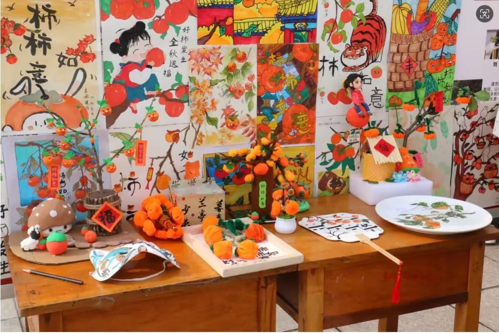 “柿叶翻红霜景秋,碧天如水倚红楼”