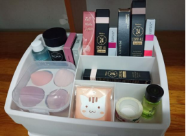 女生瓶瓶罐罐的化妆品多,那就更需要进行归整啦!用收纳盒把化妆品进行分类整理,一目了然,也节省了很多空间。
